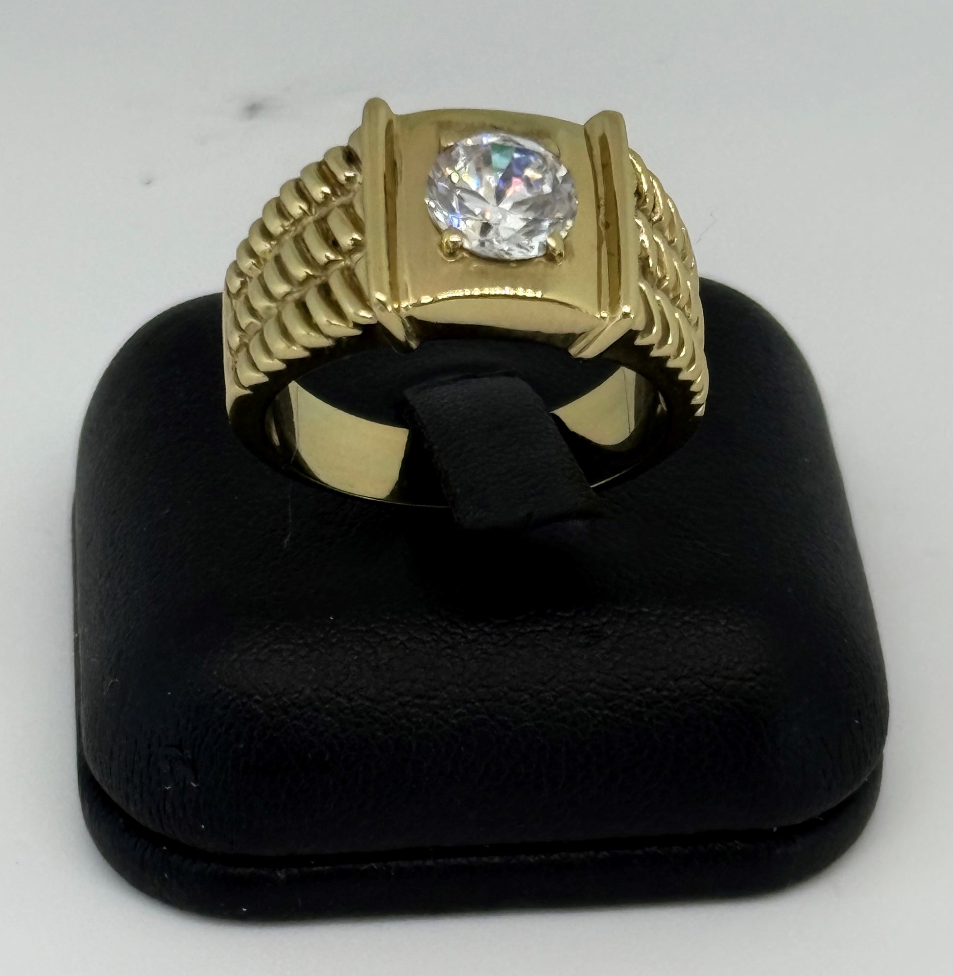 Square brass ring with cubic zirconia stone